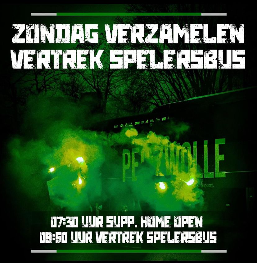 Hoop dat de spelers doordrongen zijn dat vandaag 1 ding belangrijk is: 3 punten mee naar zwolle! De supporters hebben laten zien dat er gewonnen moet worden nu aan de mannen op het veld! Geen excuses meer vandaag moet de ommekeer zijn!